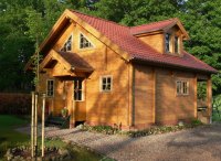 Ferienhaus in Blockbauweise "Eric T B95" Ein Haus mit Sauna und Platz für Gäste in der Wildnis von Süd Finnland. Bequem kann der Kunde hier 4 Personen auf seinem Schlafboden unterbringen und die langen lauen Sommerabende auf seiner grosszügigen Terrase geniessen. Dieses Haus war ein DIY oder Selbstaufbau Projekt und wurde direkt ab Werk telefonisch unterstützt.