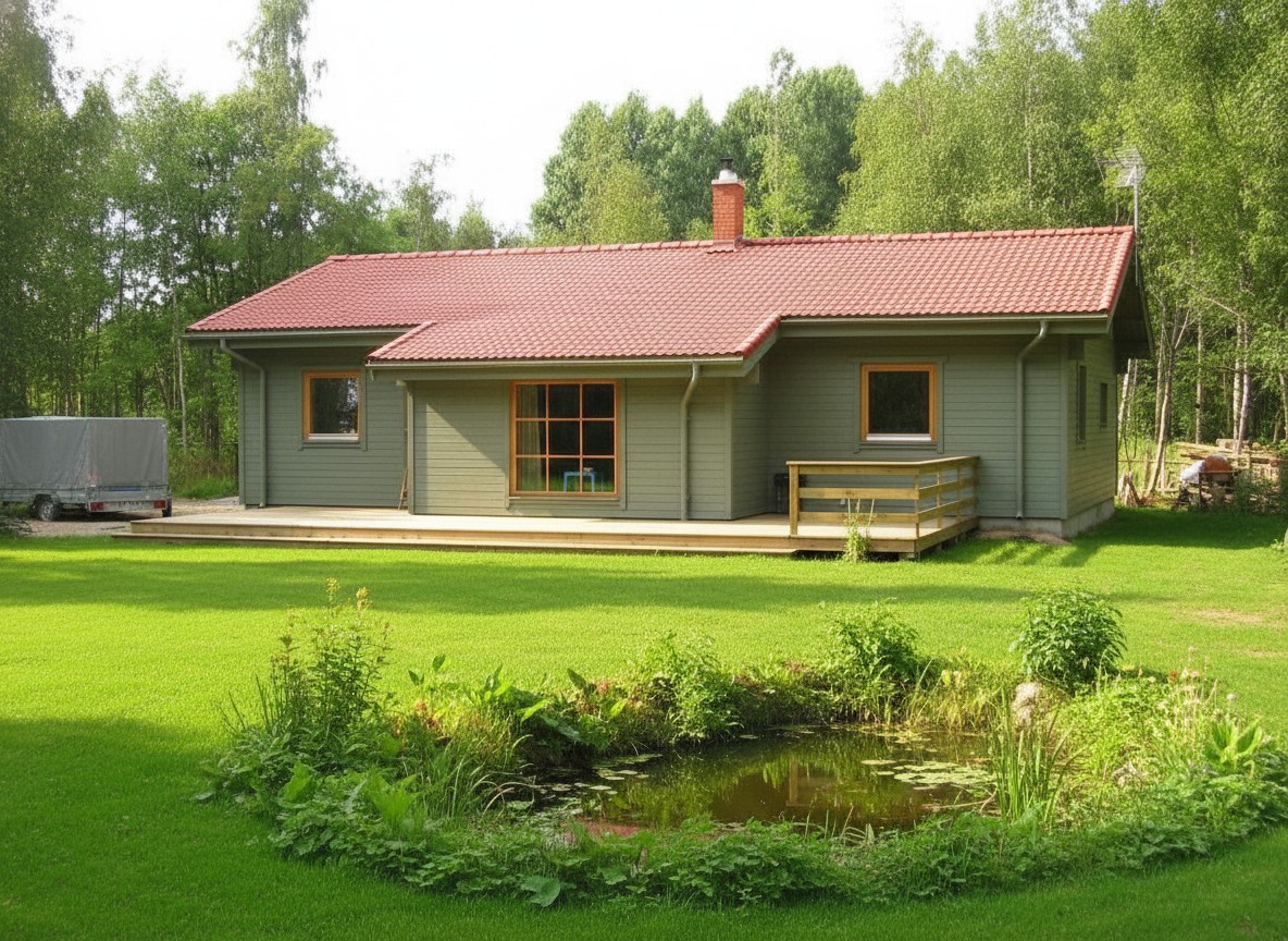 Dieses Haus steht im rauen Klima Nord- Osteuropas und trotzt bis zu 40 Grad Minusgraden. Direkt am Meer gelegen hatte der Kunde kein Problem seine Wohnfarbe im Innenbereich zu wählen. Alles in Naturtönen ist dort das Motto. Nach dem Motto "Man muss auch mal Mutig sein!" wurde dann die Aussenfassade gewählt.