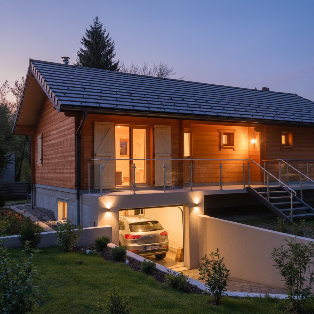 Selle ligi 100 m2 suuruse, ühekordse maja asukoht on Prantsumaa Alpides. Pärast mitmeid kooskõlastusi, mõningaid projekti muudatusi, valmistasime selle maja puitosad ja aknad, uksed ning püstitus sai teoks meie Prantsusmaa partneri abil. Maja on konstrueertud hästi vastupidavaks igasugustes ilmastiku tingimustes, sest mägedes on ilm ja hästi heitlik. Hea sisekliima ja väikse energiatarbe annab puitsein, mille väline osa on soojustatud mineraalvillaga.