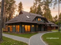 Felz 200m2 2 story building with or without balcony. The classic roof style with attached double garage is making this house one of the most popular ones. Let us know for what variation you are looking for and we will make a quote accordingly. The photos are showing different versions clients have modified.