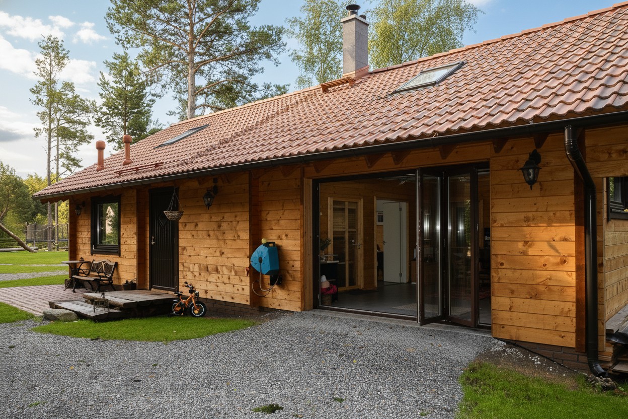 Igal majal on oma lugu, nii ka sellel 100 m2 majal siin. Algul oli soov saada ühekordne maja madala viiluga, nii 17 kraadi, kus oleks kaks magamistuba, vannituba, väike kööginišš koos esikuga ja suur tuba . Esialgsed plaanid olidki juba paigas, kui selgus, et sinna piirkonda on olemas detailplaneering ja miinimum katusekalle on 30 kraadi. Nii saigi tõstetud katusenurka ja tuli magamistubade, esiku ja vannitoa peale juurde veel üks suur ruum.